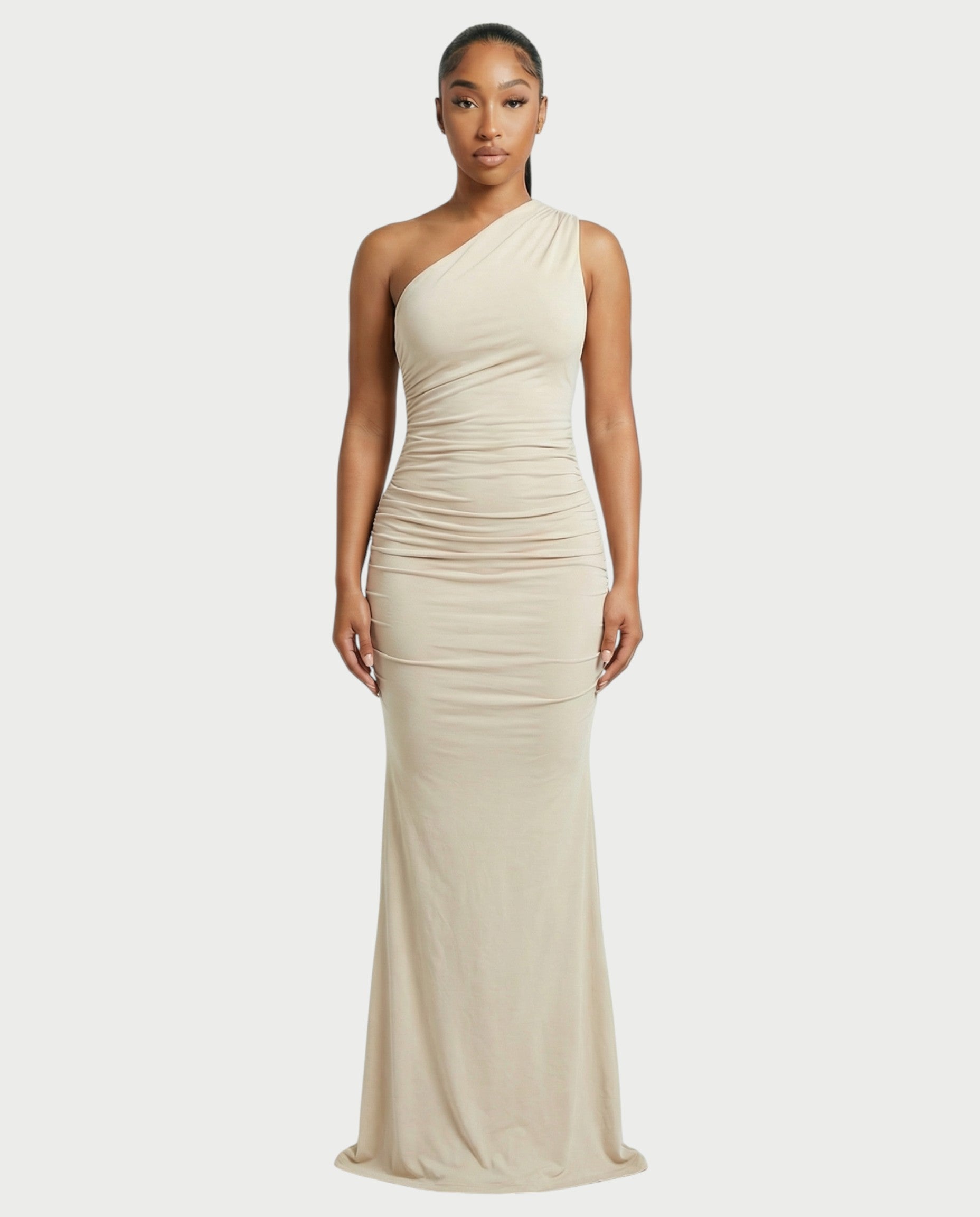 HANIMA One-Shoulder Ruched Maxi Dress
